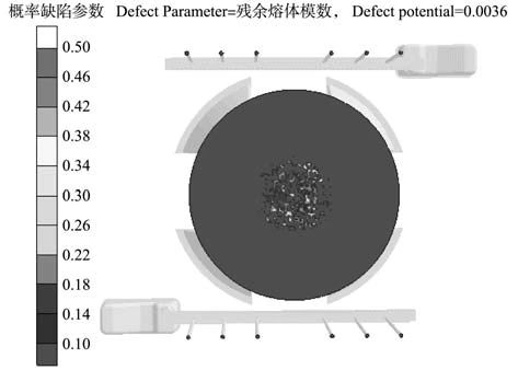 圖11 凝固過程 2.3.5 殘余熔體模數模擬 圖12為鑄造過程中活塞殘余熔體的仿真結果。從圖中可以看出,殘余熔體模數面積相比于首次,明顯降低,由于此位置較厚,縮孔無法完全消除,但有縮減趨勢。