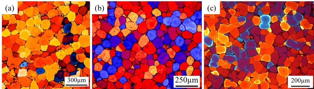 (a)7108、(b)6063、(c)7050 值得注意的是,近年來模擬仿真技術被應用于制漿技術的研究。LI G等采用有限元方法模擬了漿料溫度場在電磁場作用下的演變。QU W Y等采用相場法模擬了SEED法制漿過程中α-Al晶粒的長大和形貌演變,見圖3,并分析了溫度場、流場和成分場對α-Al晶粒的長大和形貌演變的影響規律,為漿料制備技術優化提供了參考。