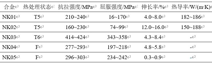 圖3 微觀組織長大過程模擬仿真結果與真實凝固組織對照 2、高性能鋁合金材料 目前,高固相流變壓鑄成形實現工業化應用的鋁合金材料以亞共晶Al-Si系合金為主,常用材料包括356、357、319s鋁合金。部分高固相流變壓鑄成形鋁合金的力學性能見表2。可以看出,流變壓鑄成形鋁合金的力學性能與鍛造成形7075鋁合金還有一定的差距。為了滿足更多應用場景的具體應用需求,國內外開展了流變壓鑄成形用高性能鋁合金材料的研發。