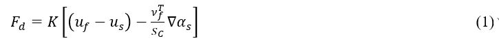 式中,uf,us分別為流體和晶胚的速度;up-uf為以晶胚中心為基準測量的晶胚間相對運動速度;