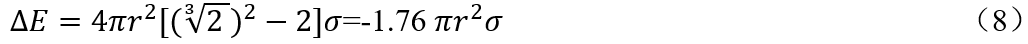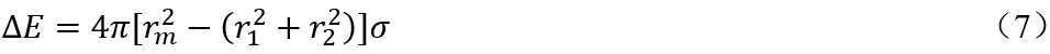若r1=r2=r,則碰撞前后的界面能變化為: