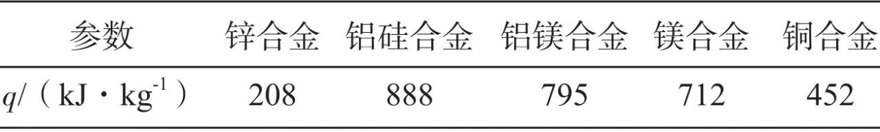 表1 壓鑄合金從澆注到推出散發出的熱量