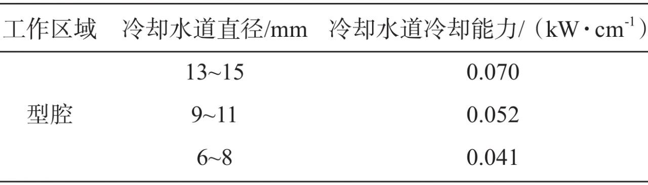 表2 單位長度冷卻水道從模具中吸收的熱量