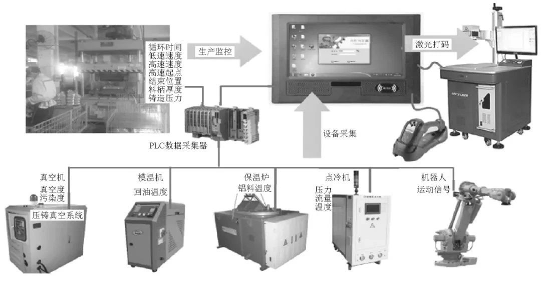 ![]() 原標(biāo)題:廣東鴻圖:鋁壓鑄鏈條蓋全工序精準(zhǔn)追溯工藝開發(fā)及應(yīng)用 如今,壓鑄產(chǎn)品日益繁多,個別產(chǎn)品量大,如汽車發(fā)動機鏈條蓋系列年需求量為60萬件。由于設(shè)備沒有數(shù)據(jù)采集,設(shè)備的OEE現(xiàn)階段只能通過人員錄入、分析、統(tǒng)計,導(dǎo)致數(shù)據(jù)往往不準(zhǔn)確,無法精確安排生產(chǎn)人員,以致機臺產(chǎn)生浪費。當(dāng)壓鑄、機加、裝配等設(shè)備工藝參數(shù)沒有記錄到系統(tǒng),未關(guān)聯(lián)到產(chǎn)品,產(chǎn)品在生產(chǎn)過程中將無不良品管理及工序管控。產(chǎn)品如果在客戶端出現(xiàn)問題將會導(dǎo)致批量隔離,因而導(dǎo)致的返工費、產(chǎn)品運輸費用也會上升。 為解決以上問題,構(gòu)建了智能制造生產(chǎn)管理系統(tǒng),促進完成快速生產(chǎn)準(zhǔn)備、生產(chǎn)信息采集、生產(chǎn)過程管理、設(shè)備管理。進行流程優(yōu)化建議,引入預(yù)警功能(包括設(shè)備、質(zhì)量、物流等),提高異常事件的快速處理能力,以逐步實現(xiàn)無紙化生產(chǎn)信息管理,取代大量而繁多、易錯的人力勞動,使生產(chǎn)過程可視化、質(zhì)量管理全面化、設(shè)備及物料管理數(shù)字化。 圖文結(jié)果 全工序流程見圖1,在壓鑄的毛坯件上刻制二維碼,通過二維碼系統(tǒng)關(guān)聯(lián)鋁液批次、壓鑄的工藝參數(shù)班次等信息,可以實現(xiàn)從源頭開始記錄。各個工序設(shè)備設(shè)置有工業(yè)平板終端與二維碼掃描槍,而且生產(chǎn)設(shè)備設(shè)置端口與平板和掃描槍連接,平板設(shè)備與公司ERP(U9)系統(tǒng)連接,提高了生產(chǎn)效率和產(chǎn)品質(zhì)量,降低了操作工人抄寫工作和人力成本;當(dāng)產(chǎn)品在客戶端產(chǎn)生問題,只要掃產(chǎn)品上的二維碼就能導(dǎo)出哪些設(shè)備生產(chǎn)、生產(chǎn)日期、生產(chǎn)過程參數(shù)是否有異常,能減少可疑品數(shù)量的隔離、返工、報廢等。一段時間后,通過系統(tǒng)的生產(chǎn)監(jiān)控,調(diào)取各個生產(chǎn)設(shè)備的生產(chǎn)數(shù)據(jù),停機、故障、保養(yǎng)等數(shù)據(jù),輸出設(shè)備OEE,來對應(yīng)公司訂單的安排,減少浪費,達到精益生產(chǎn)要求。