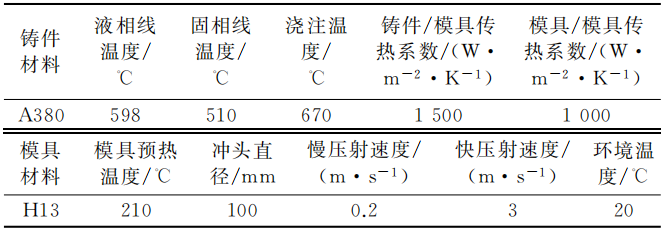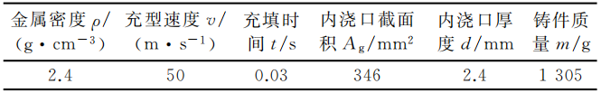 表1 壓鑄模主要設(shè)計(jì)參數(shù) 圖2 凸輪軸蓋鑄件澆注系統(tǒng)設(shè)計(jì)方案