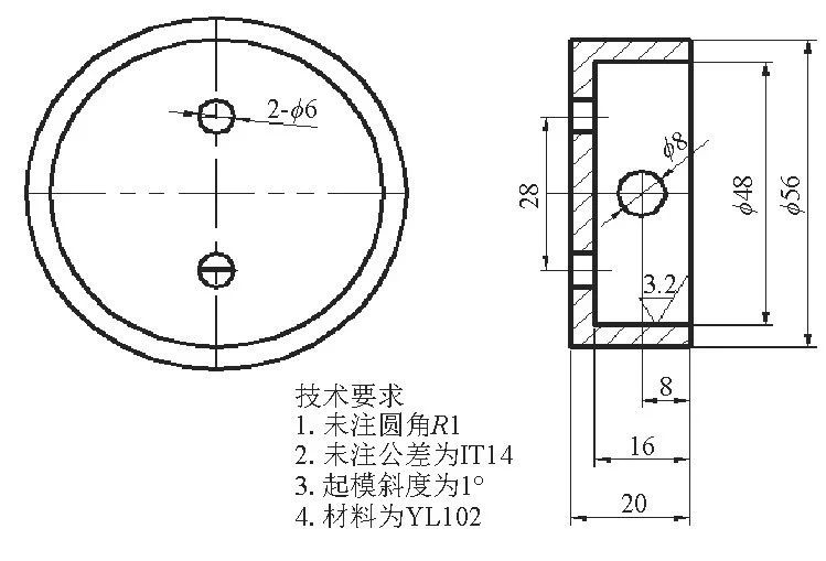 ![]() 原標題:臥式冷室壓鑄機用殼體壓鑄模設計 壓鑄因效率高、材料利用率高、成形精度高等優(yōu)點,在汽車、3C產(chǎn)品、五金零件等方面廣泛應用。針對具體壓鑄件需要設計相應的壓鑄模,殼體需要采用側(cè)澆口壓鑄模成形,而側(cè)澆口壓鑄模的設計和制造是確保鋁合金壓鑄件品質(zhì)的關(guān)鍵。以殼體鋁合金件為例,介紹鋁合金臥式冷室壓鑄機用壓鑄模的設計。 對某殼體鋁合金壓鑄件進行了工藝分析,詳細介紹了臥式冷室壓鑄機用壓鑄模的結(jié)構(gòu)設計,主要包括分型面選擇、澆注系統(tǒng)設計、側(cè)抽芯設計和脫模機構(gòu)設計,闡述了該壓鑄模的工作原理和結(jié)構(gòu)特點,為臥式冷室壓鑄機用壓鑄模結(jié)構(gòu)設計提供參考。 圖文結(jié)果 殼體結(jié)構(gòu)見圖1和圖2,該鑄件要求強度高,質(zhì)量輕,且在100℃以上高溫高濕環(huán)境下工作,因此選用YL102鋁合金,其熔點為650℃,由于Si含量較高,熔煉爐選用金屬坩堝。該鑄件上有2個φ6mm通孔及φ8mm盲孔,外形為φ56mm圓柱面,2個φ6mm通孔有中心距280-0.2mm要求,鑄件尺寸精度要求不高。該鑄件成形性能較好,要求表面光滑,內(nèi)部不得有裂紋、冷隔、氣孔等鑄造缺陷,內(nèi)、外表面的起模斜度取1°,鑄件壁厚為4mm,內(nèi)外圓柱面過渡處設置圓角,半徑取1mm;壓鑄工藝參數(shù):壓射比壓為65MPa,充型速度為42m/s,澆注溫度為630℃,模具預熱溫度為160℃,充填時間為0.1s,采用氟化鈉水作涂料。根據(jù)投影面積法計算合模力,選用J1110A型臥式冷室壓鑄機壓鑄,該壓鑄機壓室內(nèi)徑為φ40mm,外徑為φ90mm,壓射行程為0~120mm。