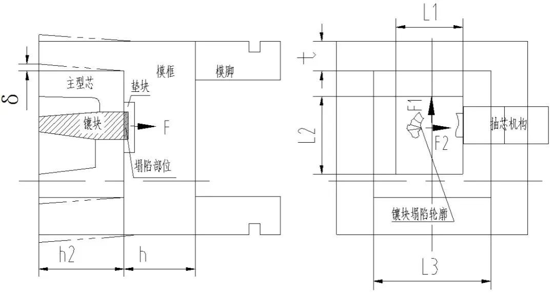 隨著模具使用壽命的增加,與嵌套配合的面,模具變形和磨損增加,飛邊毛刺也會增加。最優的設計方案是與嵌套有關的嵌套安裝銷,定位銷等模具設計為組合鑲拼式,制作備件進行及時的更換。 4模具的強度設計 壓鑄模具的強度和剛性設計不合理,壓鑄時模具變形也會導致飛邊毛刺的產生。 定義2:壓鑄模具變形量δ≤0.05 mm為模具恢復原狀的最大變形量