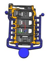1. 模具設計方案 根據缸體群架的結構特點,為保證缸體群架周邊功能區局部壁厚較厚的部位的內部品質,鑄件采用U型澆注系統,能夠快速填充鑄件并對兩側局部厚大處實施有效的補縮。缸體群架U型澆道見圖2。