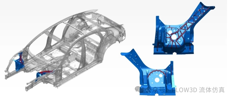 Porsche汽車應用FLOW-3D優(yōu)化鑄件設計及工藝條件 一、前言 汽車產業(yè)正朝向于發(fā)展電動汽車、更安全、更舒適、更酷炫的外型、更高性能的車子,但因為這些因素可能使汽車的重量加重,造成更多溫室氣體的排放,對環(huán)境形成破壞,又因各國目前針對環(huán)境都有訂定相關法規(guī),讓汽車業(yè)者不得不思考要如何在輕量化的情況下完成上述的幾項發(fā)展,所以輕量化結構是未來的關鍵技術。 Porsche汽車針對輕量化的技術提出了一體化鑄件的方式來改善汽車結構與重量,其優(yōu)點上有高承重設計、高結構強度、高集成潛力(降低成本)、近凈形生產(壓鑄)、及輕質結構的巨大潛力,但卻也須面臨其他衍生的挑戰(zhàn),如:鑄件以剛性為主會造成伸長率降低,不能在車輛直接碰撞區(qū)域使用、非常復雜的設計和開發(fā)過程及鑄造工藝參數(shù)的不確定性,故本文將研究針對在短時間內開發(fā)復雜鑄件的方法進行探討。