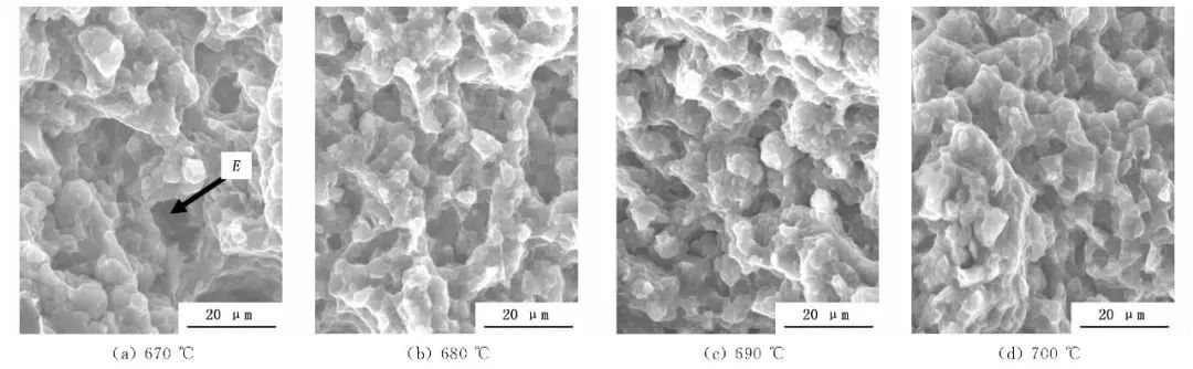 圖4 不同澆注溫度下拉伸斷口形貌 結(jié)論 (1)通過正交試驗發(fā)現(xiàn),澆注溫度對AZ91D超薄筆記本電腦外殼件的影響要比模具溫度和壓射速度的影響大,3者先后順序為澆注溫度、壓射速度和模具溫度,A4C3B2工藝條件下有最優(yōu)的抗拉強度,在A4C1B2工藝條件下有最優(yōu)的屈服強度。 (2)模具溫度為210℃,壓射速度為5m/s時,隨著澆注溫度增加,鑄件的力學(xué)性能呈現(xiàn)出逐漸增加的趨勢,而斷口縮松、縮孔數(shù)目呈現(xiàn)逐漸減少趨勢,當(dāng)澆注溫度達到700℃時有最優(yōu)力學(xué)性能,抗拉強度為242.6MPa,屈服強度為206.8MPa。 (3)與一般大厚度鎂合金壓鑄件相比,超薄AZ91D鎂合金鑄件要求更高的澆注溫度、模具溫度和壓射速度。 本文作者: