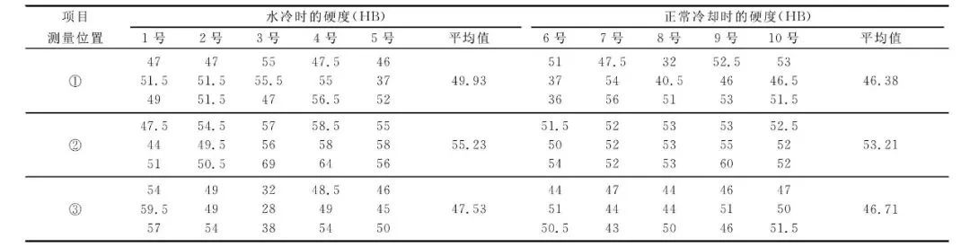 表2 壓鑄件水冷與正常冷卻時的硬度對比
