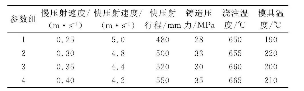 表1 壓鑄工藝參數選擇