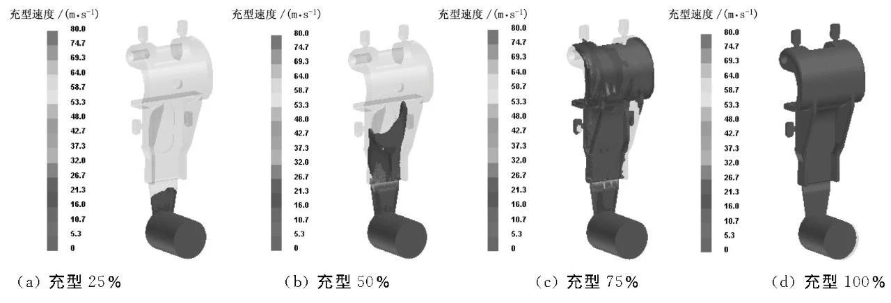 ![]() 半固態壓鑄具有成形溫度低、模具壽命長、鑄件凝固收縮小、性能優良等特點。然而,由于半固態流變壓鑄工藝設計中的問題,產品容易產生卷氣和縮孔、縮松缺陷。采用鑄造模擬軟件對A356鋁合金壓塊半固態壓鑄充型和凝固過程進行了數值模擬,分析了充型過程的流場和速度場,設計了3組半固態壓鑄工藝參數,并通過試驗確定了壓塊半固態壓鑄的最佳工藝參數,生產出合格的壓塊鑄件。 圖文結果 壓塊是一個結構相對簡單,壁厚不均勻的零件,壓塊三維圖見圖1。零件為曲面對稱結構;側面有一個直徑為9mm的盲孔,須采用側抽芯來成形;兩側壁與曲壁連接處,壁厚相差較大,容易產生應力集中,冷卻過程中易產生縮孔、縮松和熱裂等缺陷。在設計內澆口截面積時要比液態壓鑄的截面積大,其厚度一般為壓鑄件壁厚的50%左右。壓塊壓鑄件在設計時采用側澆口。根據計算得出內澆口橫截面積大小為52.5m㎡,厚度為1.5mm,寬度是鑄件邊長的0.7倍,為35mm。
