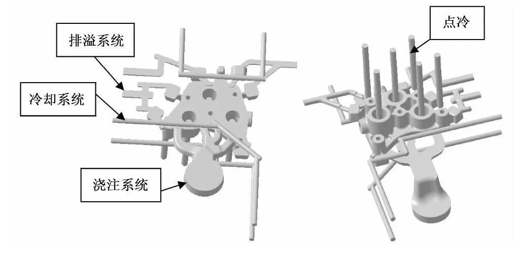 ![]() 隨著汽車輕量化的發展以及愈來愈嚴格的節能環保要求,汽車上許多原來用鑄鐵、鑄鋼的零部件正在向輕合金如鋁、鎂合金轉變。由于材料力學特性及成形工藝的差異,在此轉變過程中,產品結構需要隨之變化,即需要改變為適合于鋁、鎂等合金成形的結構。而壓鑄作為鋁、鎂合金的重要成形方法,具有生產率高、尺寸精密度高等優點,在汽車零部件的開發及生產上擁有巨大的優勢和競爭力,因此也成為汽車零部件輕量化的優選成形工藝。 本課題以某冷卻水連接器鑄件的輕量化為例,基于MAGMASOFT軟件的溫度場、熱節分布等計算結果,采用減小壁厚、設置加強筋等措施,優化了冷卻水連接器鑄件結構,使原本采用砂型鑄造的鑄鐵件改為了適于壓鑄的鋁合金件,通過對連接器的壓鑄成形工藝如澆注、冷卻、排溢等進行計算,確定了合理的工藝方案。 圖文結果 圖1為冷卻水連接器的模型圖,原為鑄鐵件。為減輕質量,擬將此產品改為鋁合金,采用壓鑄生產。該零件外形輪廓尺寸為140mm×127mm×48mm,鋁合金材料為A380,其成分見表1。產品氣密性要求在150kPa下泄漏量≤4.8cm³/min。鑄件外觀不能存在冷隔、裂紋等缺陷,內部品質符合ASTM E505A2級或以上。