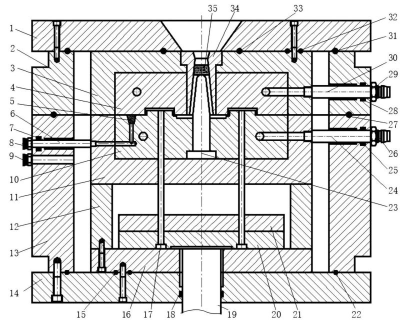 ![]() 原標題:基于熱室壓鑄機的高真空壓鑄工藝設計與試驗的研究 壓鑄件廣泛應用于汽車、五金、通信等行業。提升壓鑄件的生產制造工藝以提高壓鑄件的制造品質,對壓鑄業十分重要。研究者們總結了提升壓鑄件品質的兩種生產工藝法:真空截止閥法和激冷排氣槽法,并闡述了其結構原理,在此基礎上介紹了兩種國外高真空壓鑄工藝:Vacuum GolveBox 法和MFT法。在普通壓鑄機上通過壓射過程中壓射沖頭的位置控制抽真空過程中真空閥的開閉,避免合金液流入抽真空系統。通過在模具型腔末端設計牙型排氣槽與真空排氣槽相連,使液態合金經牙型排氣槽的阻擋作用后停止流動,避免合金液流入抽真空系統。在模具型腔末端設計了一種主副雙通道的抽真空通道,主通道的排氣截面大,由真空閥控制其開閉,副通道截面小且形狀為齒狀,以此增加液態合金流入其中后的流動阻力,避免合金液進入抽真空系統。在實際工程應用上,為了提高壓鑄件的成形品質,克服壓鑄件氣孔和縮松缺陷,提高壓鑄件的力學性能,企業普遍采用高真空壓鑄工藝,但存在的問題是模具型腔的密封性欠佳,同時伴有少量合金液被抽入抽真空系統,導致生產的穩定性不高,后續維護成本高。 本研究以MFT法和Vacuum GolveBox法為基礎,在普通熱室壓鑄機上實施高真空壓鑄。通過對熱室壓鑄模具密封裝置、抽真空口通氣阻料裝置及抽真空壓鑄工藝流程進行設計,確保密封箱與模具型腔內的真空度,從而實現穩定的高真空壓鑄工藝。結合試驗和實際生產,分析該工藝方法對鑄件斷面特征及力學性能的影響,為制備高質量壓鑄件提供參考。 圖文結果 實現高真空壓鑄工藝的關鍵技術有以下3點:一是模具密封;二是模具中抽真空口機構設置;三是抽真空流程設計。對于模具密封技術,目前國內普遍采用的方法是在模具上圍繞模具型腔進行密封機構設計,常用的方法其關鍵是在模具分型面上、模具推出機構及模具與壓鑄機射壓機構等部位設計密封圈進行密封,避免空氣進入模具型腔。這種方法的優點是無需單獨設計和制造密封裝備,其缺點是增加了模具的生產制造難度,縮短了模具的使用壽命。對于抽真空口機構設計,目前主要的方法有兩種:第1種是由基于杠桿原理的抽真空口控制裝置,該裝置是在模具抽真空口處設計由連桿連接的主從動活塞,抽真空時,型腔內的氣體通過模具抽真口抽離,壓鑄時,當合金液流經主動活塞時,主動活塞通過連桿機構帶動從動活塞閉合抽真空口,從而避免液態合金進入抽真空系統。這種機構的優點在于結構相對簡單、制作方便,缺點是生產時不斷有少量合金累積在主動活塞與活塞孔之間,造成活塞動作的不靈敏,導致合金液溢入抽真空系統,從而造成生產的中斷。第2種是在模具抽真空處設置由液壓缸帶動的擋板開閉裝置,抽真空時,液壓缸帶動擋板打開抽真空口,當模具型腔真空度達到要求時,液壓缸帶動擋板關閉真空口。這種結構能極大地簡化模具結構,缺點是由于各種原因導致的液壓缸運動不及時,使液態合金容易進入抽真空系統,從而造成生產中斷。抽真空的流程一般是在合模狀態下,先對模具型腔抽真空,當真空度達到要求后,停止抽真空,然后再啟動壓射流程,將熔融合金壓入模具型腔中。其優點是在壓鑄過程中,真空系統停止了對模具型腔的抽真空,其能有效避免合金液進入真空系統,其缺點是熔融合金在填充過程中,可能會混入少量氣體,從而影響鑄件成形品質。 圖1為設計優化后的熱室高真空壓鑄工藝結構圖。其中,將模具整體密封于矩形密封箱內,密封箱主體結構由定模密封箱底板1,定模密封箱套板2,動模密封箱底板14,動模密封箱套板13,圓環密封圈15、32、33,圓長條密封圈22、27、31等零件組成。其密封方案如下:將熱室壓鑄模具定模板3通過螺釘固定在定模密封箱底板1上,在其接觸面上設置圓環密封圈32、33;將動模底板16固定在動模密封箱底板14上,在其接觸面上設置圓環密封圈15;在動模密封箱底板14底端開設頂出孔,并在孔內設置矩形密封圈18,壓鑄機推桿19經頂出孔后再推動模具的推出機構將壓鑄件推出模具型腔外;在定模密封箱套板2和動模密封箱套板13的接觸面上設置圓長條密封圈27;在定模密封箱底板1與定模密封箱套板的接觸面上設置圓長條密封圈31;在動模密封箱底板14與動模密封箱套板13的接觸面設置圓長條密封圈22,通過上述位置的密封設計,除了模具與壓鑄機噴嘴接觸的進料口外,基本實現了對模具其余部分的整體密封。