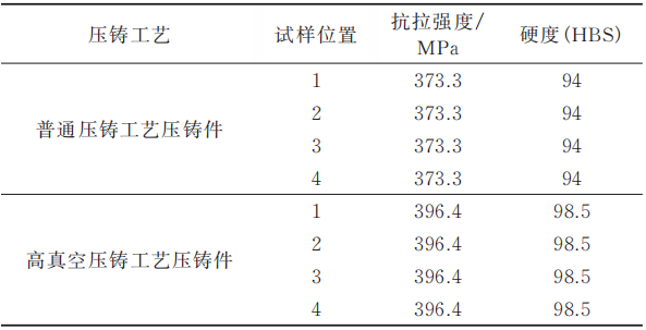 (a)普通壓鑄 (b)高真空壓鑄 表4 不同壓鑄環境下S型鑄件力學性能