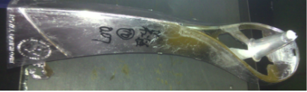 (a)定模部分 (b)動模部分 圖5為不同壓鑄條件下所獲得的S型鑄件。可以看出,在普通壓鑄工藝下,由于模具型腔內氣體未能及時排出型腔外,導致合金液在充填過程中,受到來自型腔內氣體的反向阻力,使液態合金未能填充滿S型鑄件的末端,鋸開產品橫斷面發現,產品斷面特征中殘留少量氣孔缺陷。在設計優化后的高真空壓鑄工藝下,由于模具外圍及模具型腔內的氣體在壓鑄前被抽離至高真空,因此,液態合金在填充過程所受阻力小,能順利填充整個S型鑄件,鋸開產品橫截面未發現有氣孔及縮松缺陷,產品截面特征的致密性較好。表4為不同壓鑄環境下所獲得的S型鑄件在拉伸試驗后,由WE-100液壓式萬能測試機測得的抗拉強度及WILSON-UH4250型萬能硬度計測得的硬度數據。 為進一步分析設計優化后的高真空壓鑄工藝對實際工程應用的適應性,圖6為壓鑄企業針對不同壓鑄環境實際試生產的長條形鋅合金壓鑄件。采用普通壓鑄工藝時,由于產品外形尺寸較大,壁厚較薄,合金液在填充過程中,模具型腔內氣體未能在充填時間內排出模外,導致合金液受到較大的反向填充阻力,使試制產品左下端出現填充不足的缺陷。采用高真空壓鑄工藝后,抽真空系統在壓鑄前先對模具型腔及密封箱抽真空,液態合金在高真空狀態下填充模具型腔時,充填過程反向阻力小,試制產品能順利的充填完整,見圖6b。可見,在普通熱室壓鑄機上通過設計優化實現的高真空壓鑄工藝能大幅提高壓鑄件的成形品質。