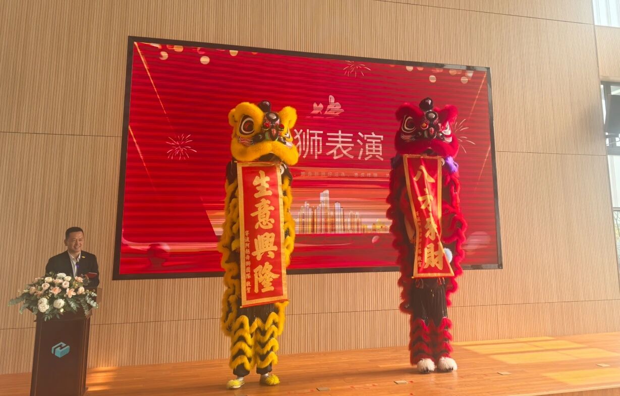 醒獅表演 儀式環節精彩紛呈,傳統韻味與科技氣息完美交融。威風凜凜的舞獅登臺獻藝后,象山縣投資促進中心胡賽紅副主任與慧臻科技劉杜總經理共同為祥獅點睛,“一點左眼開天眼,二點右眼展宏圖,三點額頭啟新程”,寓意著兩大新品將以智慧之光照亮智造之路。在熱烈的掌聲中,胡賽紅主任、陳海星副鎮長、劉杜總經理等嘉賓共同剪彩,三剪落下,彩綢飛舞、禮花綻放,正式宣告慧臻科技智能制造新征程的全面啟航。剪彩過后,全體嘉賓與工作人員共同合影,定格這一歷史性時刻。
