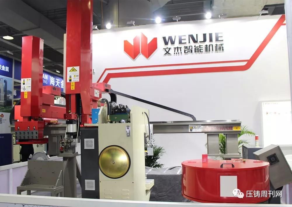 ![]() 在中國,汽車輕量化進程持續推進,汽車結構件、5G通訊件規?;枨?ldquo;浮出水面”,大型壓鑄廠上大設備的步伐明顯加快,力勁、伊之密、意特佩雷斯、布勒、意德拉等國內外知名壓鑄機企業4000或4500噸以上壓鑄機均已交付客戶。中國市場對超大噸位壓鑄機需求從未如此旺盛,預示著大型尺寸壓鑄件推廣應用的時代已經開啟。 作為壓鑄線性機器人的領航者,佛山市文杰智能機械有限公司(以下簡稱“文杰智能”)敏銳地察覺這一市場需求,早早布局大型壓鑄線性機器人的研發。經過一年多的技術攻關,文杰智能于2017年成功推出其最大噸位的線性機器人WJC-4000,適合與鎖模力3500-4000噸大型壓鑄機配合使用。經過在客戶工廠近一年的應用實踐,日前該機型正式在市場全面推廣。 WJC系列是文杰智能正式推出市場的第二代的雙臂線性機器人,乃公司多年的潛心力作和技術結晶,具有高效能識別、伺服驅動兩大特點,工作效率更高,負載更大,移動速度更快、精度更高。WJC-4000擁有兩個移動臂,可用于壓鑄過程的噴霧、取件、冷卻、碼垛、鑲嵌、沖邊等多種工序,最大負載可達90公斤,具快速而且精準優點,移動速度最快可達每秒1.5米,大型線性機器人重復定位精度正負0.15毫米。