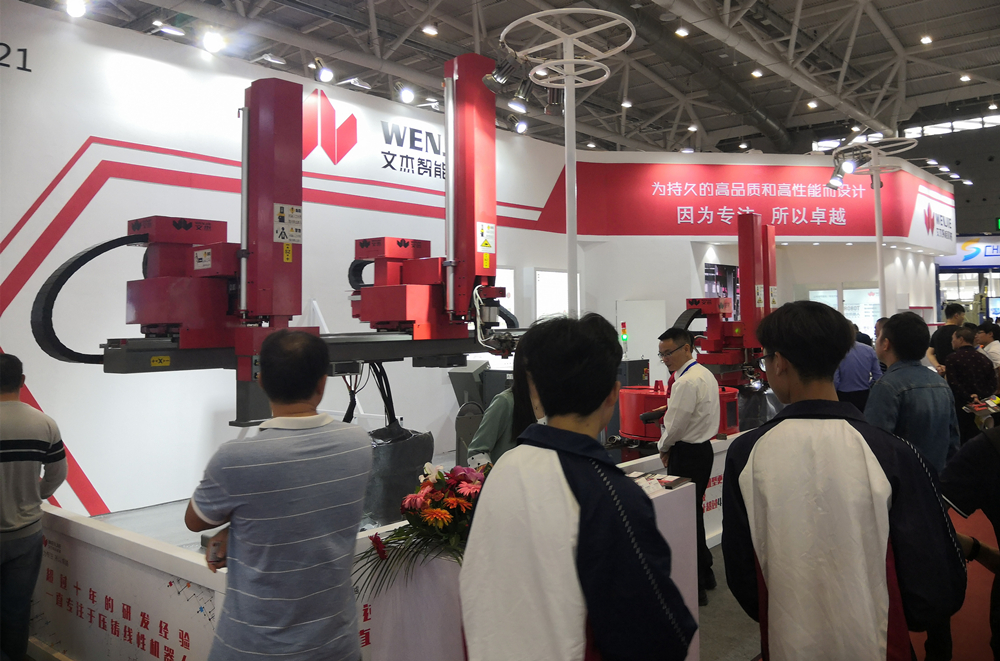 ![]() 文杰智能參展團(tuán)隊(duì),左四為楊杰先生 近日,2019國際(深圳)鑄業(yè)展在深圳國際會(huì)展中心(寶安新館)閉幕。行業(yè)技術(shù)領(lǐng)先的壓鑄線性機(jī)器人廠商--佛山市文杰智能機(jī)械有限公司(下稱“文杰智能”)主要推介了其多年錘煉的WJC系列壓鑄線性機(jī)器人、WJB系列線性機(jī)械手產(chǎn)品,現(xiàn)場(chǎng)展示了兩個(gè)系列的代表機(jī)型WJC-900和WJB-400。 文杰智能董事長(zhǎng)楊杰先生表示:“目前,文杰智能主要向市場(chǎng)推介WJC系列線性機(jī)器人、WJB系列線性機(jī)械手。其中,WJC系列對(duì)標(biāo)國際四大品牌機(jī)器人,主要面向高端、大型壓鑄生產(chǎn)線的需求,不僅可執(zhí)行噴霧、取件動(dòng)作,還可進(jìn)行碼垛、鑲嵌、沖邊等;WJB系列則主要面向中小型壓鑄生產(chǎn)線,屬于高性價(jià)比產(chǎn)品系列,為噴霧、取件一體機(jī)。” 楊杰先生表示:“自2009年至今,文杰智能走過了十周年的發(fā)展歷程,十年如一日的專注于壓鑄線性機(jī)器人(手)領(lǐng)域,十年如一日地搞研發(fā)、做產(chǎn)品,掌握了在該領(lǐng)域領(lǐng)先的技術(shù)、豐富的應(yīng)用實(shí)踐經(jīng)驗(yàn),不斷優(yōu)化線性機(jī)器人的性能,為用戶帶來穩(wěn)定、耐用、高效的壓鑄自動(dòng)化設(shè)備。” WJC系列七軸雙臂線性機(jī)器人,滿足高端多功能、大型壓鑄機(jī)使用需求 據(jù)介紹,WJC系列為七軸雙臂線性機(jī)器人,其快速而且精準(zhǔn);標(biāo)準(zhǔn)規(guī)格的中小型機(jī)器人,移動(dòng)速度最快可達(dá)每秒2.3米,位置公差為±0.05mm。大型線性機(jī)器人移動(dòng)速度最快可達(dá)每秒1.5米,位置公差為±0.10mm。該系列擁有WJC-900、WJC-1800、WJC-3000、WJC-4000多個(gè)款式,滿足合模力從400-4000T壓鑄機(jī)使用需求。