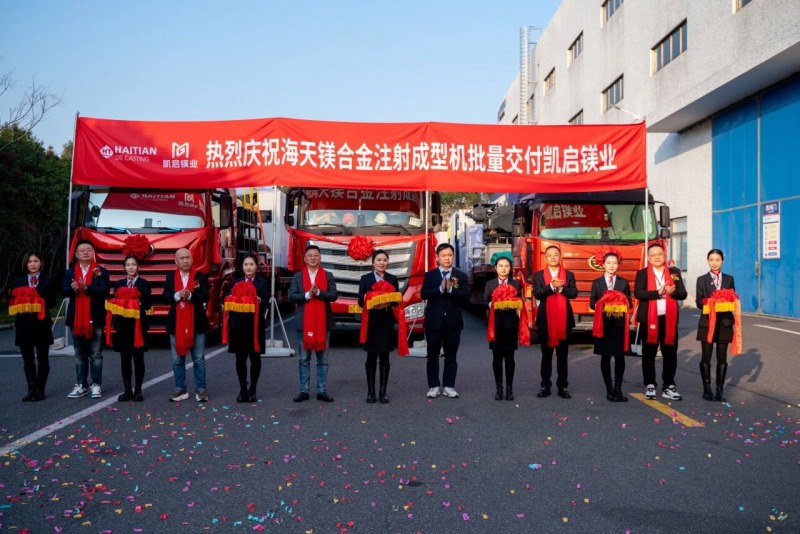 簽約儀式結束后,現場舉行了隆重的發機儀式。6臺高性能鎂合金注射成型機正式啟程,發往凱啟鎂科技生產基地,成為雙方合作及產業協同成果的直接見證。