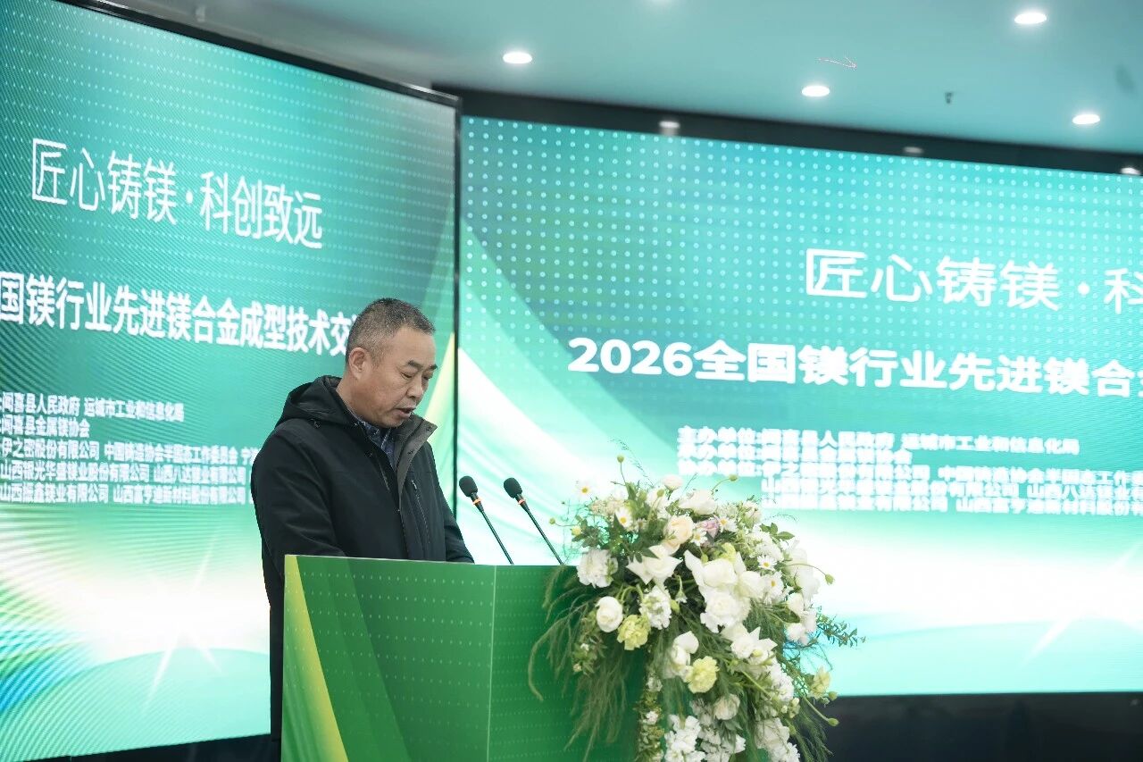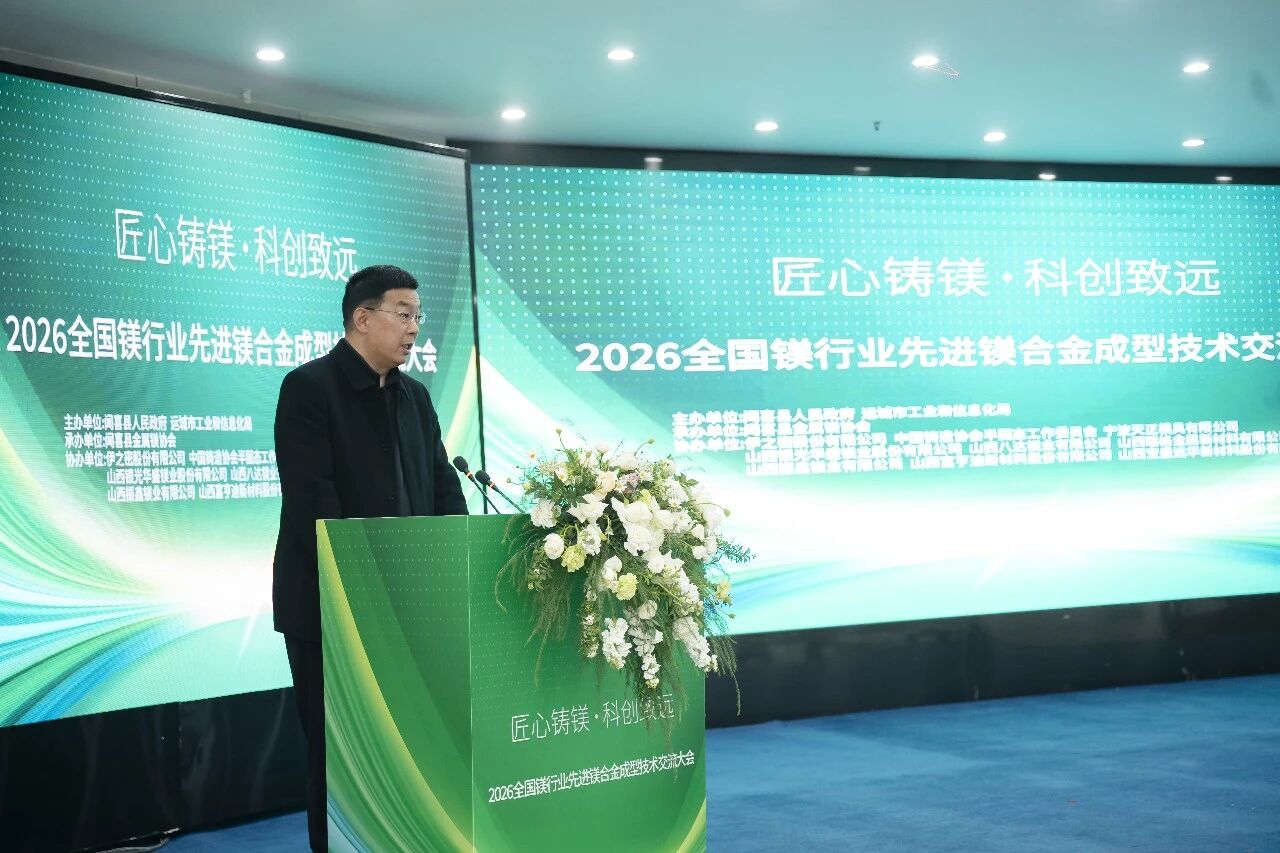 ![]() 3月20日,農(nóng)歷二月初二“龍?zhí)ь^”,在這個(gè)寓意生機(jī)與希望的日子里,以“匠心鑄鎂•科創(chuàng)致遠(yuǎn)”為主題的2026聞喜縣先進(jìn)鎂合金成型技術(shù)交流大會(huì)在山西省聞喜縣聞喜大酒店隆重開(kāi)幕。 本次大會(huì)由聞喜縣人民政府、運(yùn)城市工業(yè)和信息化局主辦,聞喜縣金屬鎂協(xié)會(huì)承辦,伊之密股份有限公司、中國(guó)鑄造協(xié)會(huì)半固態(tài)工作委員會(huì)、寧波天正模具有限公司、山西銀光華盛鎂業(yè)股份有限公司、山西八達(dá)鎂業(yè)有限公司、山西瑞格金屬新材料有限公司、山西振鑫鎂業(yè)有限公司、山西寶盛遠(yuǎn)華新材料股份有限公司、山西富亨迪新材料股份有限公司等單位協(xié)辦。會(huì)議匯聚了全國(guó)鎂行業(yè)頂尖專(zhuān)家、政府領(lǐng)導(dǎo)及產(chǎn)業(yè)鏈上下游企業(yè)代表120余人,共話鎂合金成型技術(shù)前沿,共謀產(chǎn)業(yè)高質(zhì)量發(fā)展新篇章。 01.「高規(guī)格開(kāi)幕」 政企學(xué)研共話鎂業(yè)未來(lái) 大會(huì)在聞喜縣金屬鎂協(xié)會(huì)吉俊康秘書(shū)長(zhǎng)的主持下正式拉開(kāi)帷幕。