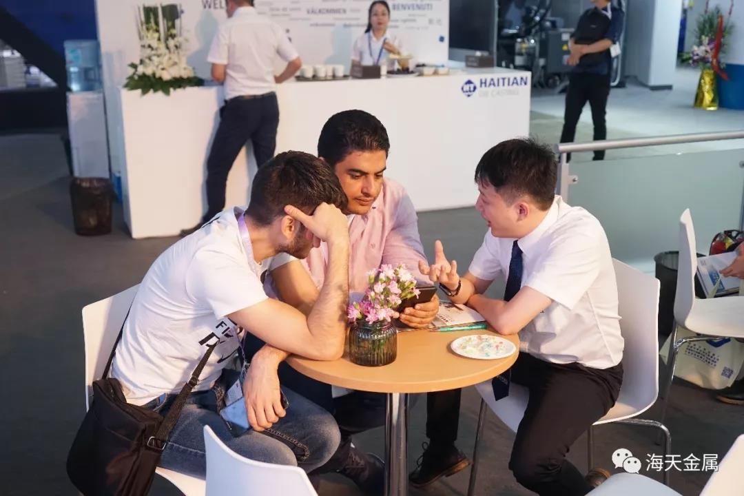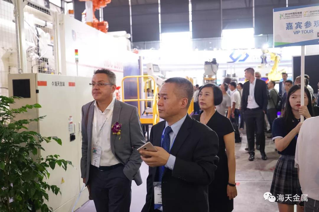 發(fā)布會吸引了眾多觀眾前來 貴賓巡防 18日12時許,中國壓鑄展的貴賓巡訪團來到海天金屬展位現場并與樂曉東先生進行了深入的交流。