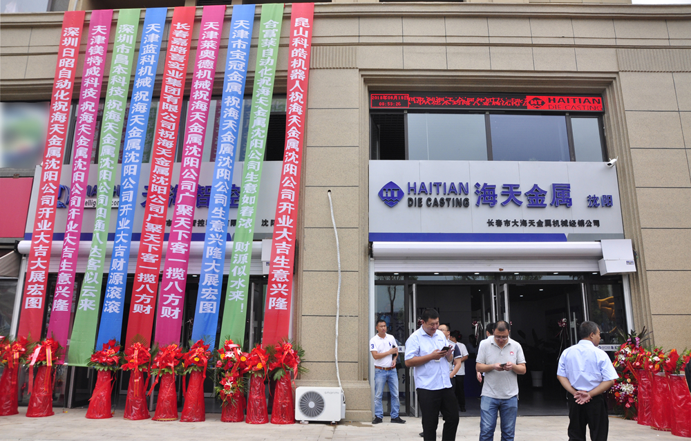 開業剪彩儀式 海天金屬是海天集團下的第五大產業,秉承海天半個世紀的精密設備制造管理理念,主營多種系列壓鑄機,依托海天塑機、海天精工、海天驅動的產業平臺優勢,致力于推動壓鑄行業進步,為客戶提供高性價比的壓鑄成套設備和完整解決方案,從而讓客戶獲得具有競爭力的壓鑄產品生產能力。 壓鑄行業最大的下游市場和發展支撐是汽車制造業,沈陽作為全國較大的汽車產業基地,擁有華晨寶馬、通用北盛、華晨金杯等著名的生產廠商,壓鑄行業在此具有廣闊的發展空間。海天金屬沈陽經銷公司的成立,意味著海天金屬在東北地區的拓展跨出了重要的一步。