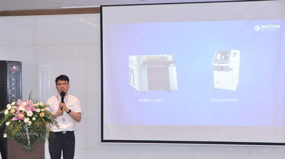 海天金屬沈陽經銷公司 開業典禮后,舉行了“海天金屬(東北)第一屆技術交流會”。這是海天金屬首次在東北區域向廣大客戶宣傳海天壓鑄機技術。本次交流會上,海天金屬營銷總經理洪劍文先生向在座來賓詳細介紹了海天集團的概況,海天金屬技術科科長徐建華先生則為在場來賓介紹了HDC冷室壓鑄機的特點,并現場解答了客戶對于壓鑄機技術上的問題。