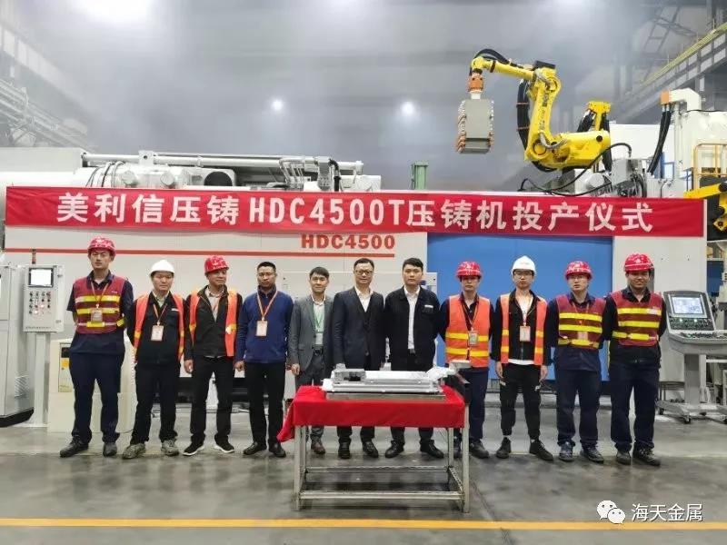 美利信壓鑄、海天金屬雙方工作人員合照 自2019年9月30日出機(jī),經(jīng)歷了國慶,HDC4500T壓鑄機(jī)從寧波來到重慶。到達(dá)美利信壓鑄工廠后,由雙方工程師共同合作完成壓鑄機(jī)的安裝、調(diào)試等工作。