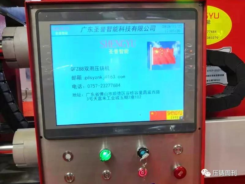 ![]() 合模力為880kN的QFZ系列冷/熱室雙功能壓鑄機 在近日閉幕的“2019國際(深圳)鑄業(yè)展”上,廣東圣譽智能科技有限公司(下稱“廣東圣譽”)推出一款創(chuàng)新產品—QFZ系列冷/熱室雙功能壓鑄機。該新型壓鑄機兼具熱室機、冷室機的功能,采用立式射料設計,四缸(無機鉸)合模機構,可生產鋅、鋁、鎂、銅合金壓鑄件。 廣東圣譽董事長劉繼文先生表示:“該特種壓鑄機具有卓越性能,德國廠商早前已成功開發(fā),在德國售價超過100萬歐元;同時歐洲公司擬定該設備不向中國推廣銷售,為此廣東圣譽自主設計與開發(fā),以滿足國內用戶需求。”