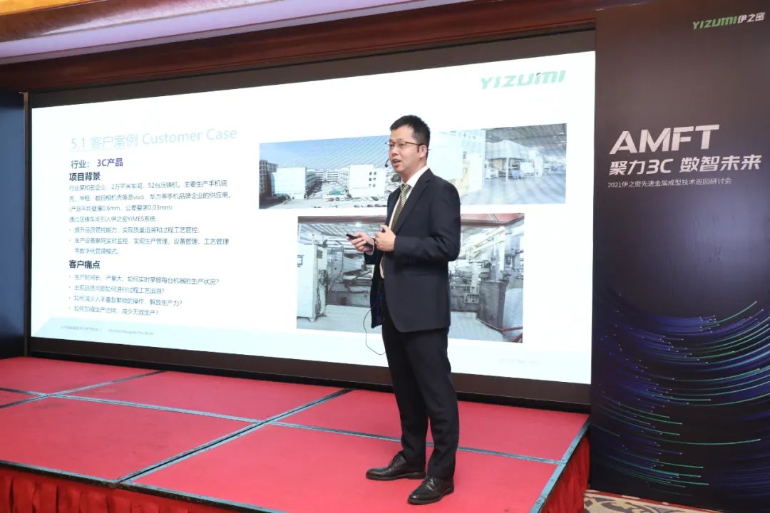 伊之密技術專家們演講 研討會上,有著行業豐富經驗的伊之密技術專家們先后上臺,分享了升級版型H II系列冷室壓鑄機的研發成果,分析了薄壁件在壓鑄生產的缺陷及解決方案,以及半固態鎂合金注射成型機在3C類薄壁產品領域的應用優勢。
