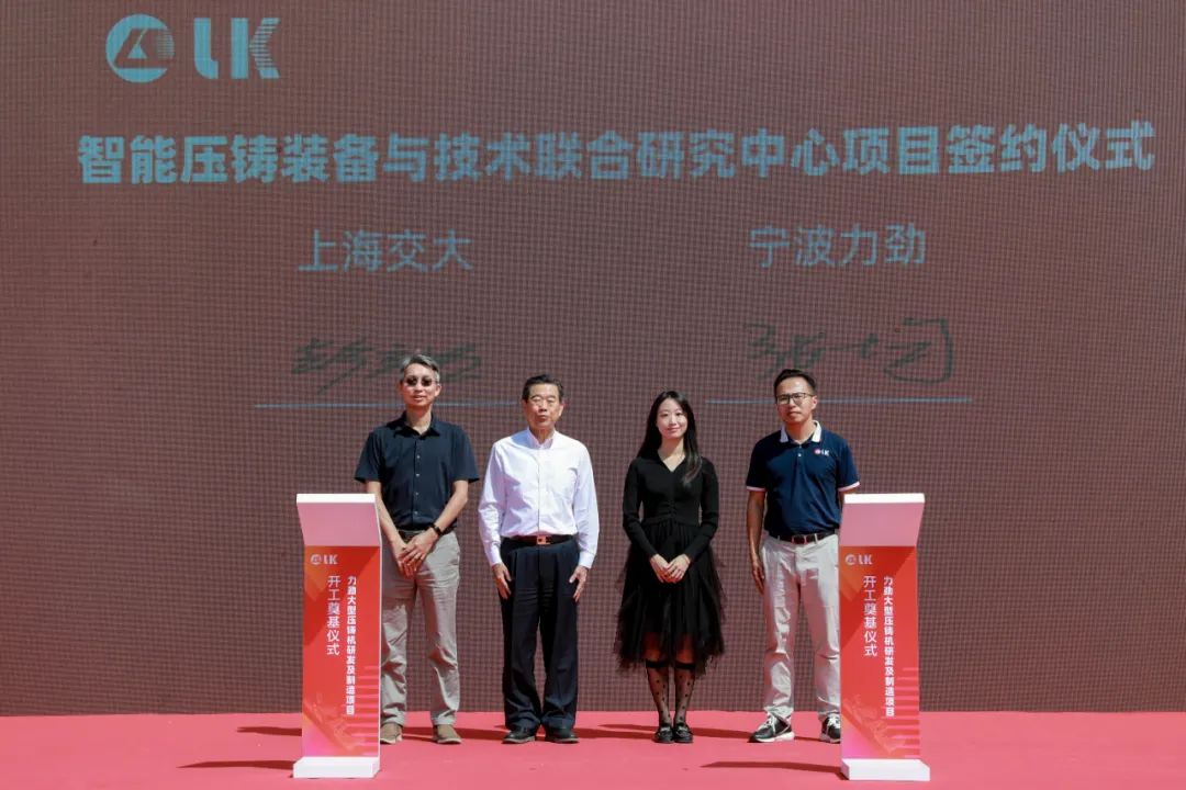 力勁集團創(chuàng)始人劉相尚先生、董事會主席助理劉瑩瑩小姐、力勁集團寧波力勁科技有限公司(以下簡稱“寧波力勁科技”)總經(jīng)理張均先生及副總經(jīng)理劉燕兒女士、上海交通大學輕合金精密成型國家工程研究中心常務(wù)副主任彭立明教授、寧波建工工程集團有限公司常務(wù)副總經(jīng)理李科杰、寧波馭盛工程項目管理有限公司董事長杜發(fā)琪及40余家投資機構(gòu)代表出席項目開工奠基儀式。