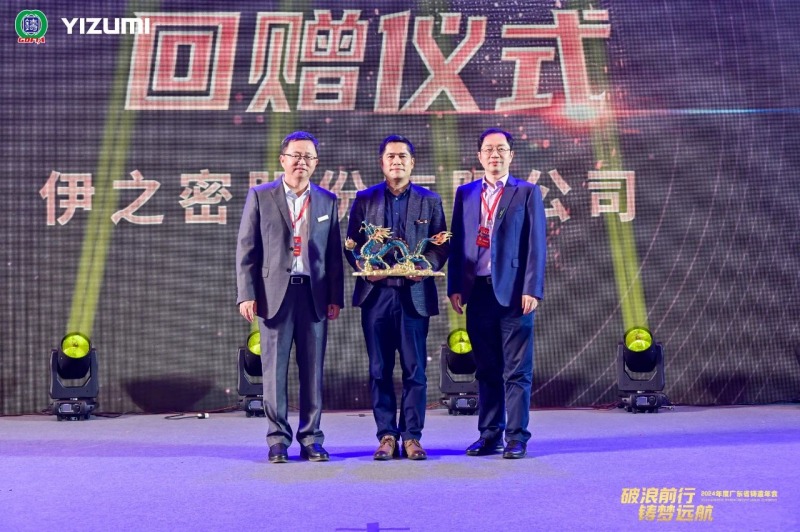 他表示:“創(chuàng)新對(duì)一個(gè)國(guó)家、一個(gè)民族來(lái)說,是發(fā)展進(jìn)步的靈魂和不竭動(dòng)力,對(duì)于企業(yè)來(lái)講,是尋找生機(jī)和出路的必要條件。未來(lái),我將帶領(lǐng)團(tuán)隊(duì)立足于伊之密的戰(zhàn)略發(fā)展規(guī)劃,特別在‘高端化、數(shù)智化、綠色化’方面不斷研發(fā)與掌握國(guó)際領(lǐng)先的關(guān)鍵核心技術(shù),從而提升產(chǎn)品核心競(jìng)爭(zhēng)力,助力伊之密成為成型裝備領(lǐng)域的世界級(jí)企業(yè),為壓鑄行業(yè)注入源源不斷的發(fā)展動(dòng)力,讓整個(gè)行業(yè)的發(fā)展更上一層樓!” 晚宴上,還舉行了贊助單位回贈(zèng)儀式,作為答謝晚宴冠名贊助單位,伊之密獲贈(zèng)精美工藝品。這些禮品的頒發(fā)不僅是對(duì)贊助單位的肯定,更是對(duì)整個(gè)行業(yè)未來(lái)發(fā)展的期許。