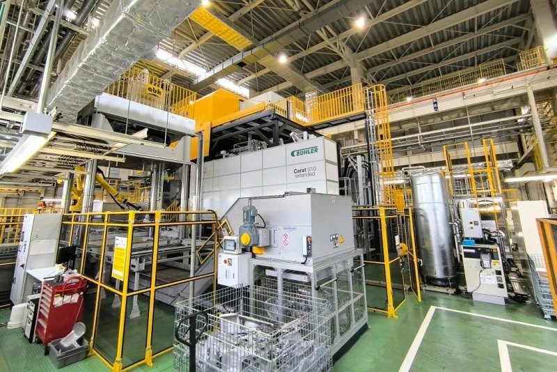 宇部9000T超大型壓鑄機(效果圖)圖源:宇部興產機械 日本宇部的機械業務子公司宇部興產機械(UBE Machinery)于2024年8月開發了鎖模力9000噸的壓鑄機,并從豐田獲得了訂單。該公司將向豐田上鄉工廠供貨,并計劃在田原工廠進一步設置。宇部興產機械于2022年啟動銷售時的設備為6500噸,該機型已獲得日本利優比的訂單并計劃于本月交付。 與此同時,本田汽車日本工廠已引進一套布勒6100T超大型壓鑄機,用于一體化壓鑄技術及產品應用開發。