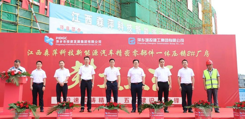 9月9日,江西森萍科技新能源汽車精密零部件一體壓鑄2#廠房順利封頂。