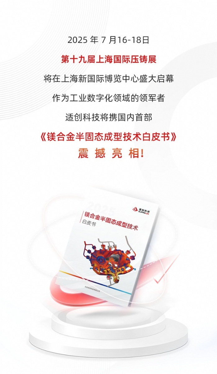 適創(chuàng)科技攜國內(nèi)首部自調(diào)研編撰的《鎂合金半固態(tài)成型技術(shù)白皮書》和自研鑄造仿真云平臺「SupreCAST智鑄超云」亮相上海壓鑄展。
