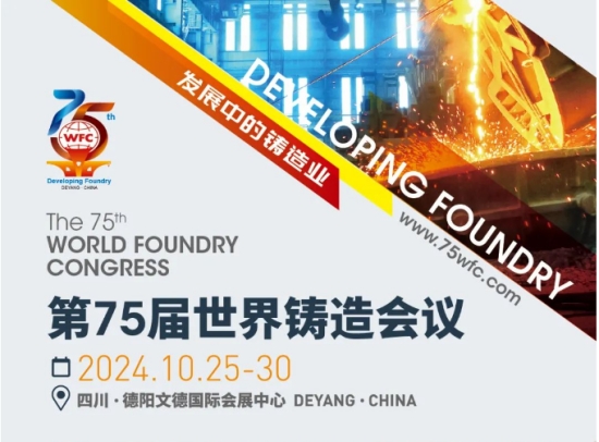 第75屆世界鑄造會議將于2024年10月25-30日在四川德陽舉辦。