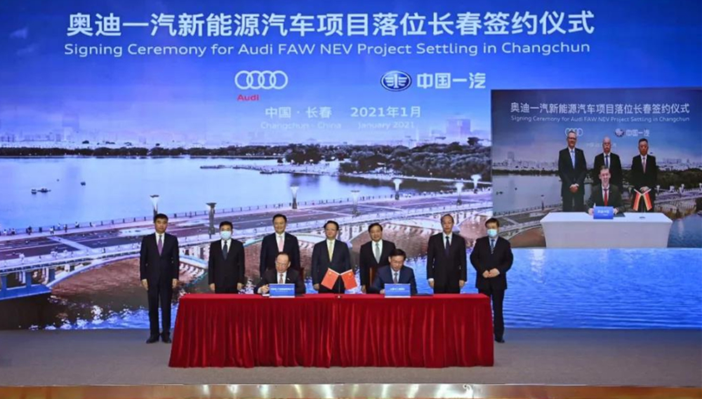 1月18日,中國第一汽車集團有限公司與奧迪汽車股份公司、長春市人民政府共同簽署協(xié)議,宣布奧迪一汽新能源合資項目落戶長春。