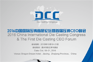 記者從中國鑄造協會獲悉,由該協會主辦、中國鑄造協會壓鑄分會承辦的2016中國國際壓鑄高層論壇暨首屆壓鑄CEO峰會,將于2016年10月18-21日在浙江嘉興市龍之夢大酒店舉行。