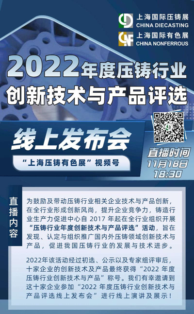 “2022年度壓鑄行業(yè)創(chuàng)新技術(shù)與產(chǎn)品”線上發(fā)布會