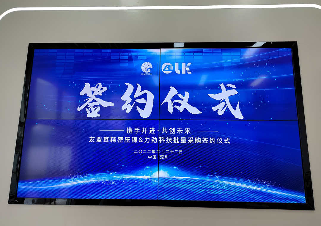 2月22日,東莞友盟鑫精密壓鑄科技有限公司(“友盟鑫”)與力勁集團批量壓鑄設備采購簽約儀式,在力勁(深圳)高新技術工業園舉行。
