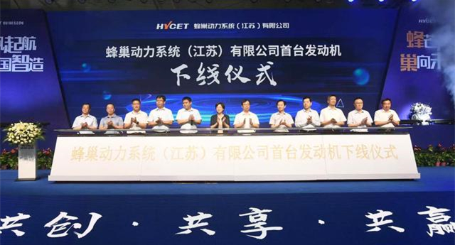 6月30日,蜂巢動力系統(江蘇)有限公司首臺發動機下線暨項目簽約儀式,在江蘇揚中蜂巢易創產業園舉行。
