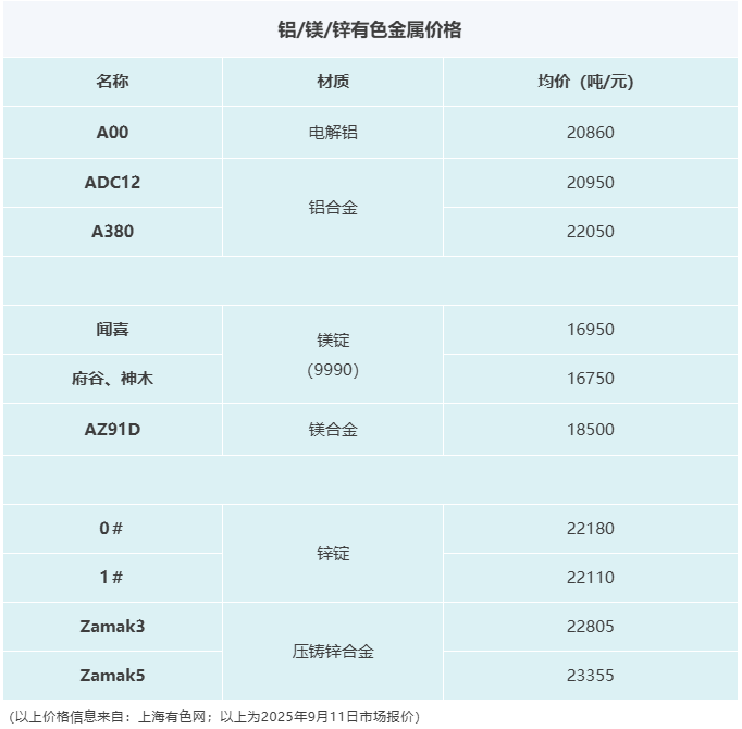 壓鑄早報2025/9/12星期五