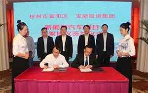 近日,深圳寶能集團與杭州富陽區政府簽訂項目合作框架協議。寶能集團擬投資140億元,在杭州江南新區建設年產30萬輛新能源汽車及相關配套設備生產基地。