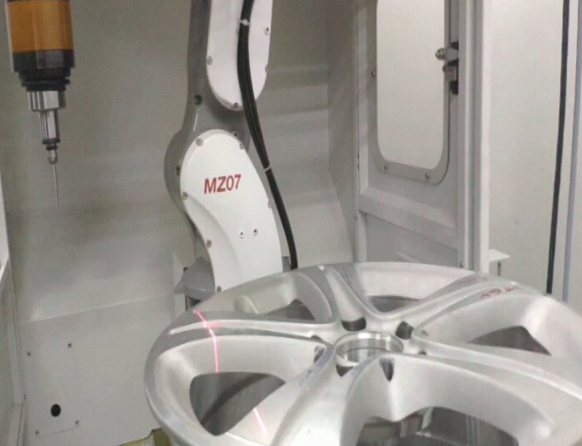 在鋁合金輪轂去毛刺領域,工業機器人亦已成功應用其中,并成熟運用多年。而由于鋁合金輪轂機器人去毛刺,能很好地解決了去毛刺成本,技術難度、去毛刺效果、過切導致損傷輪轂基體等問題,正受到越來越多的鋁輪轂廠歡迎。