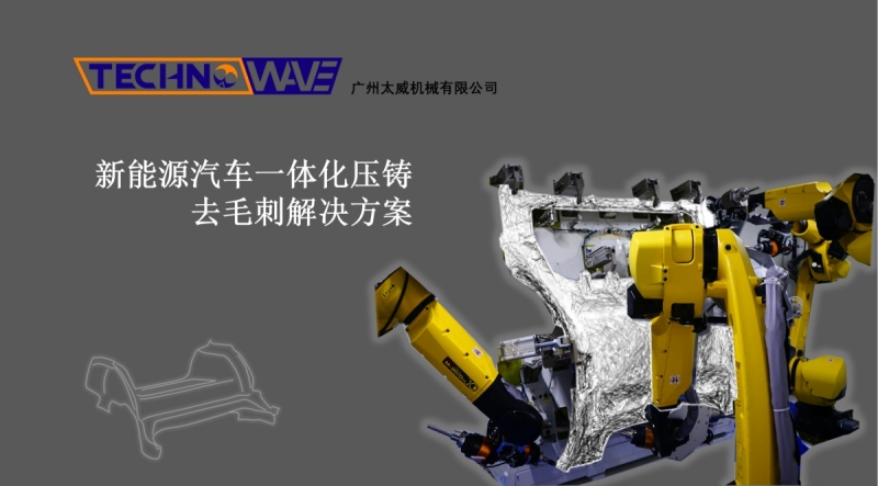 廣州太威機械有限公司緊跟時代步伐,針對6000T以上壓鑄產品,成功研發出一體壓鑄大型結構件柔性去毛刺及智能加工系統。