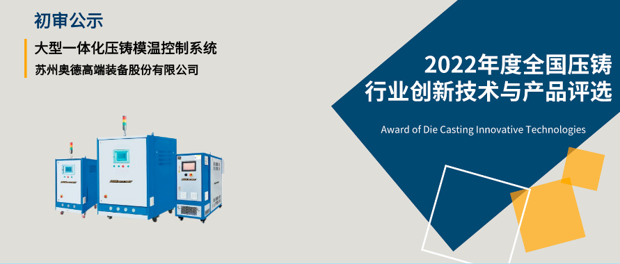 蘇州奧德高端裝備股份有限公司的“大型一體化壓鑄模溫控制系統”的創新獎申報已經通過活動組委會初審。