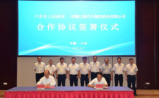 皖西日?qǐng)?bào)消息,9月1日,安徽六安市政府與安徽江淮汽車(chē)集團(tuán)股份有限公司舉行合作協(xié)議簽署儀式。