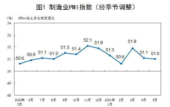 5月份,中國制造業(yè)采購經(jīng)理指數(shù)為51%,比上月微落0.1個(gè)百分點(diǎn),繼續(xù)保持了平穩(wěn)運(yùn)行狀態(tài)。